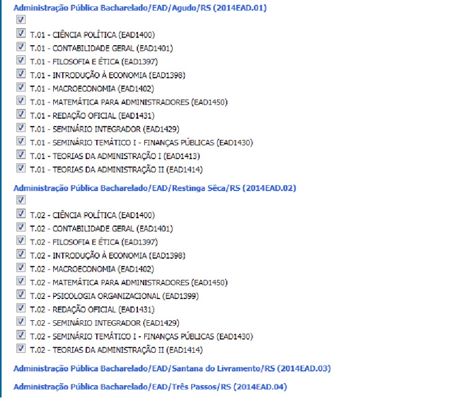 Para uma determinada disciplina (exemplo: Cálculo 1), é necessário criar três turmas, uma em cada polo: